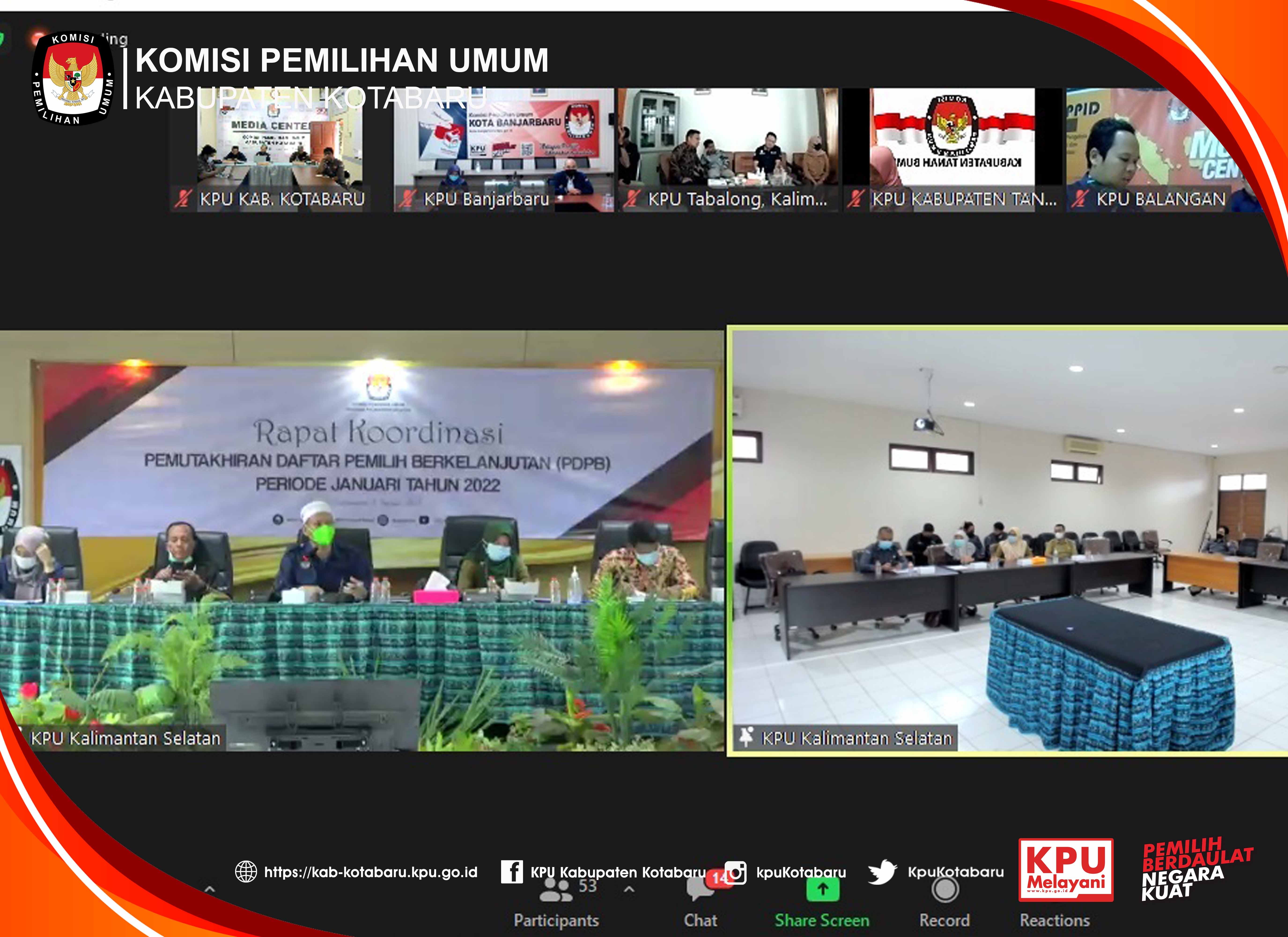 KPU Kab.Kotabaru mengikuti Rapat Koordinasi Pemutakhiran Data Pemilih Berkelanjutan Provinsi Kalimantan Selatan Periode Januari tahun 2022