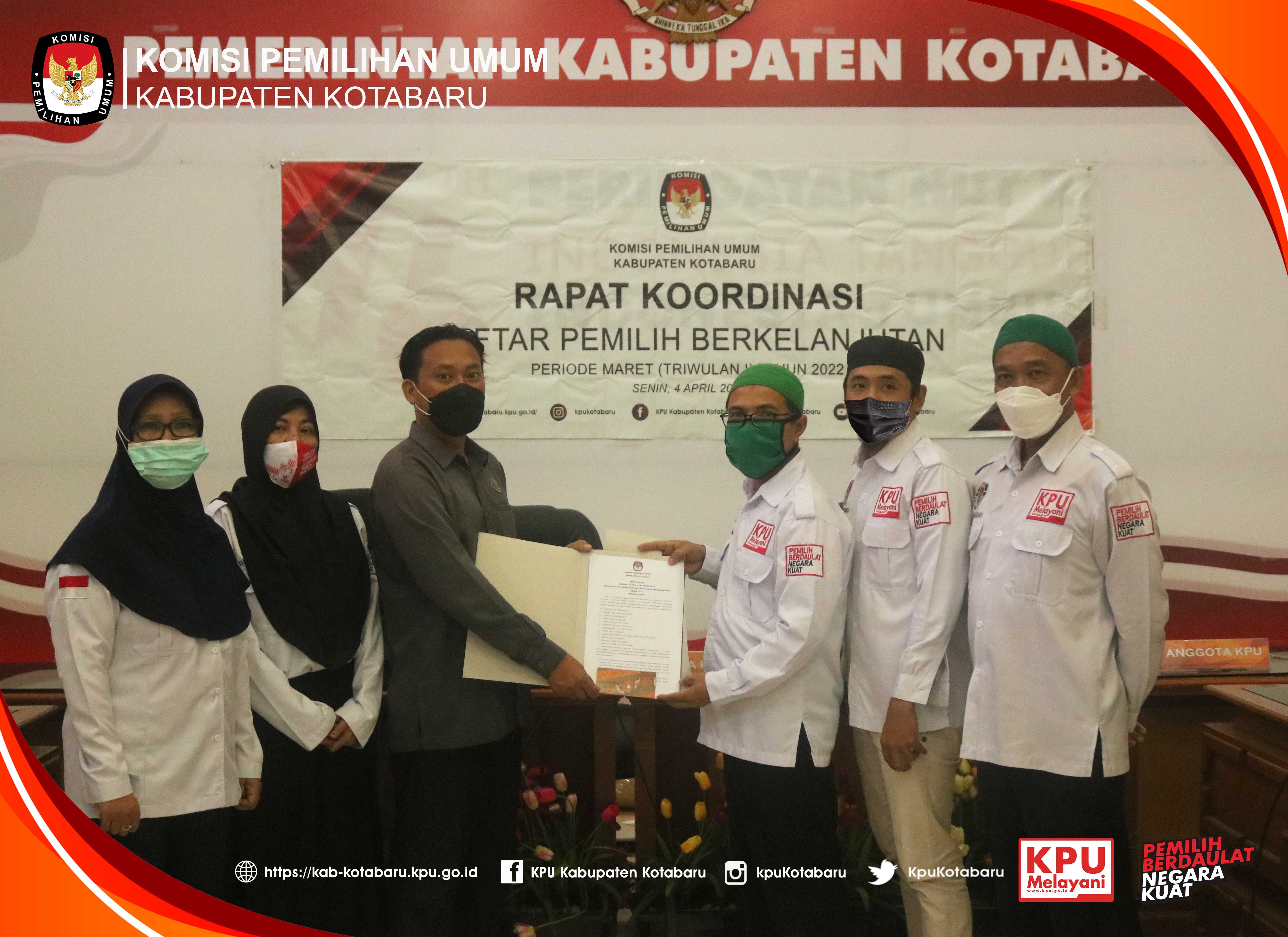 KPU Kabupaten Kotabaru menyelenggarakan Rapat Koordinasi Pemutakhiran Daftar Pemilih Berkelanjutan Periode Maret (Triwulan I) Tahun 2022.
