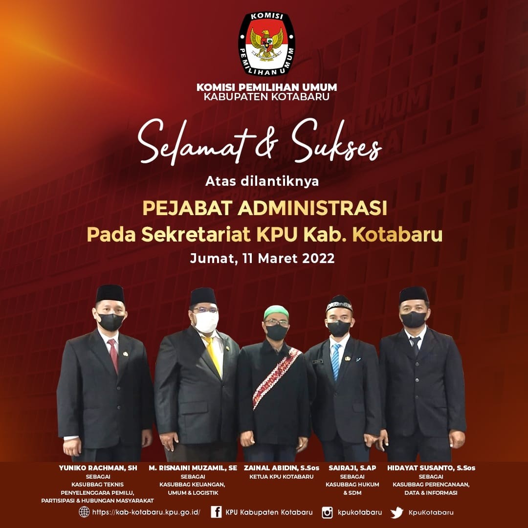 KPU Kotabaru mengucapkan Selamat dan Sukses atas dilantiknya para Pejabat Administrasi di jajaran Satker KPU Kab. Kotabaru