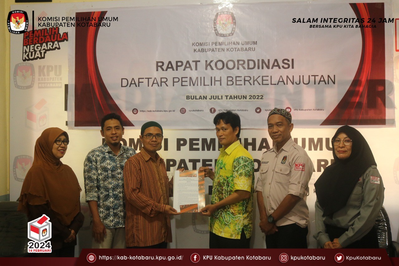 KPU Kabupaten Kotabaru melaksanakan Rapat Koordinasi Daftar Pemilih Berkelanjutan Periode Juli Tahun 2022 di tingkat Kabupaten Kotabaru