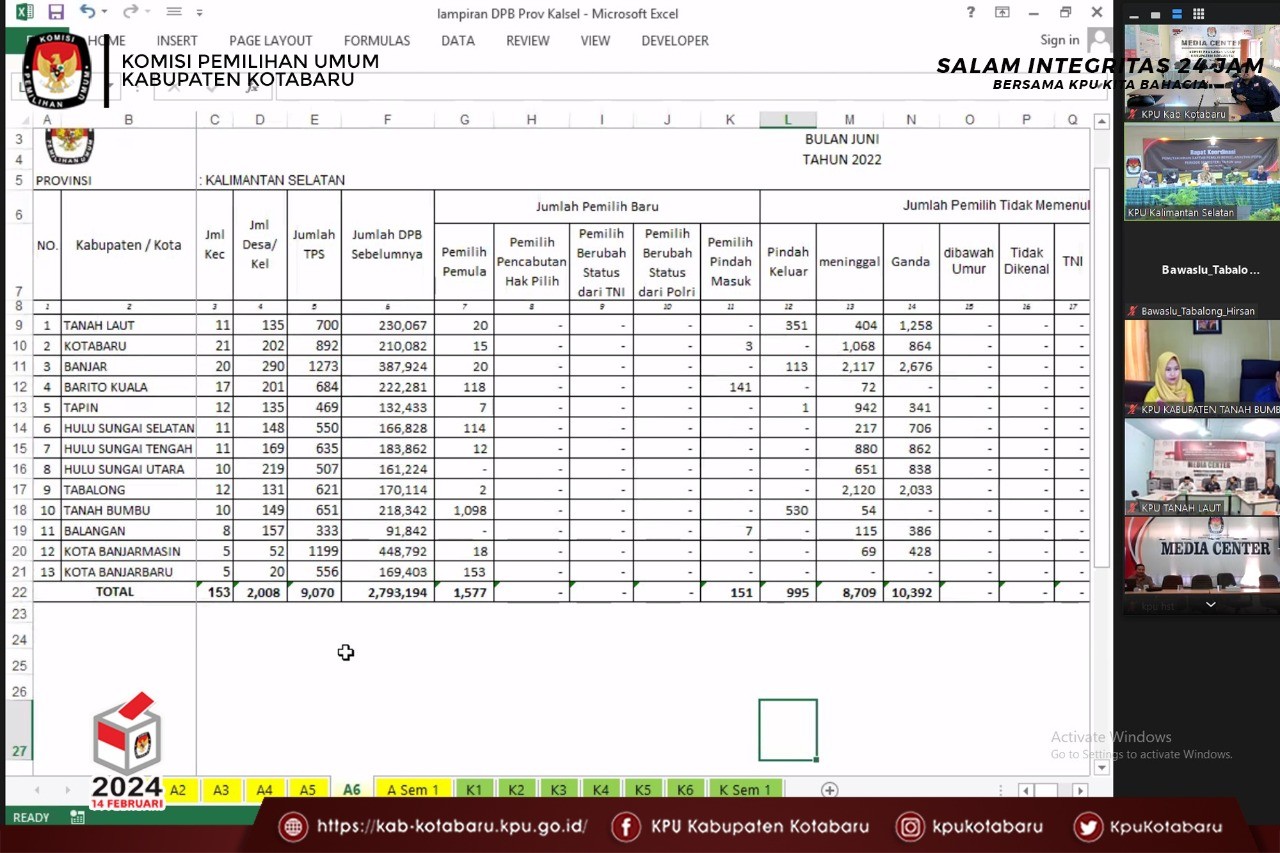 Selasa (5/7) KPU Kabupaten Kotabaru mengikuti kegiatan zoom yang diselenggarakan KPU Provinsi Kalimantan Selatan dengan tema acara