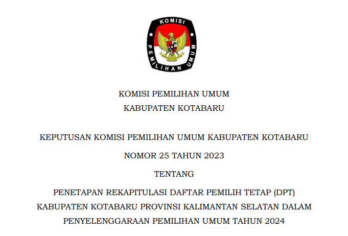 Rapat Koordinasi yang dilakukan oleh KPU Kabupaten Kotabaru menghasilkan hal sebagai berikut: