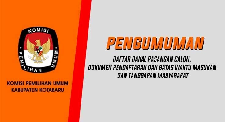 Bersama ini disampaikan Pengumuman Daftar Bakal Pasangan Calon, Dokumen Pendaftaran dan Batas Waktu Masukan dan Tanggapan Masyarakat.