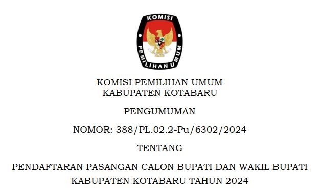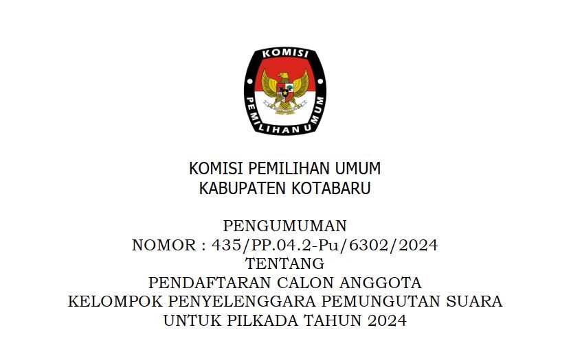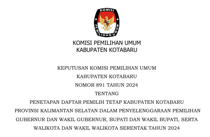 Data pemilih akan memasuki tahap akhir dengan penetapan Daftar Pemilih Tetap (DPT) oleh KPU Kabupaten Kotabaru pada 14 hingga 21 September 2024