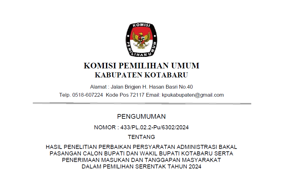 KPU Kabupaten Kotabaru menjelaskan bahwa proses ini dilakukan dengan transparansi penuh tanggungjawab, mulai dari coklit, penetapan di tingkat PPS (Panitia Pemungutan Suara), hingga rekapitulasi di tingkat kabupaten.