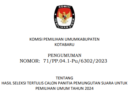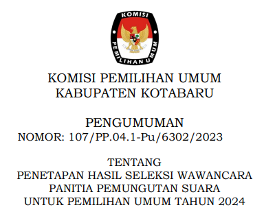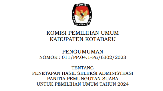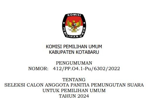 Berikut disampaikan Pengumuman Seleksi Calon Anggota Panitia Pemungutan Suara untuk Pemilihan Umum Tahun 2024