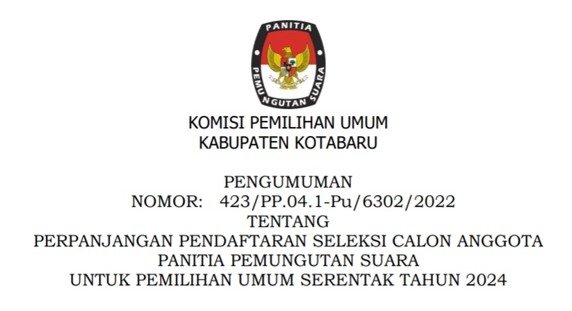 Berikut Lampiran Pengumuman Perpanjangan Pendaftatan Seleksi Calon Anggota Panitia Pemungutan Suara untuk Pemilihan Umum Serentak Tahun 2024