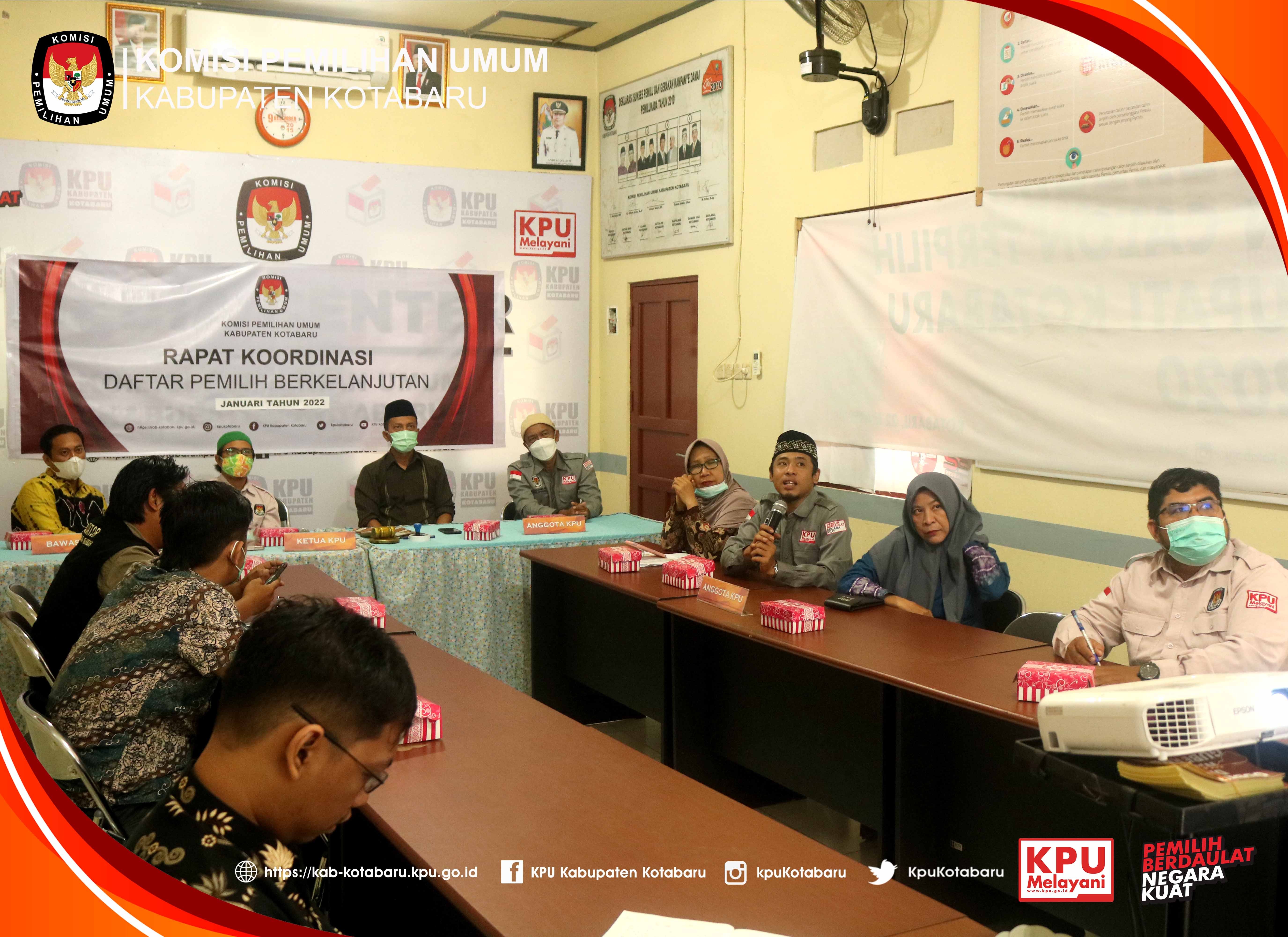 #TemanPemilih Kamis 3 Februari 2022, KPU Kabupaten Kotabaru telah melaksanakan Rapat Koordinasi Pemuktahiran Daftar Pemilih Berkelanjutan (DPB) untuk periode Januari Tahun 2022